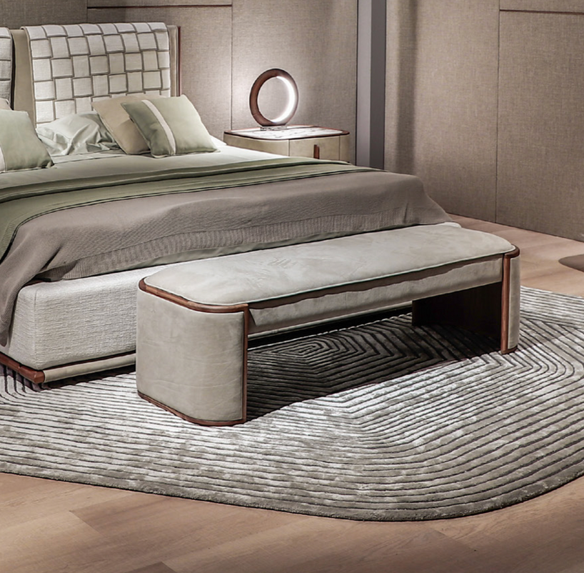 Handcrafted in Tuscany, Ulivi Salotti benches combine sculptural elegance with luxurious materials such as solid walnut, vegetable-tanned leather and Italian nubuck. Designed for foot of beds, entryways or sophisticated living spaces, these benches offer the perfect harmony of comfort, proportion and artisanal beauty.